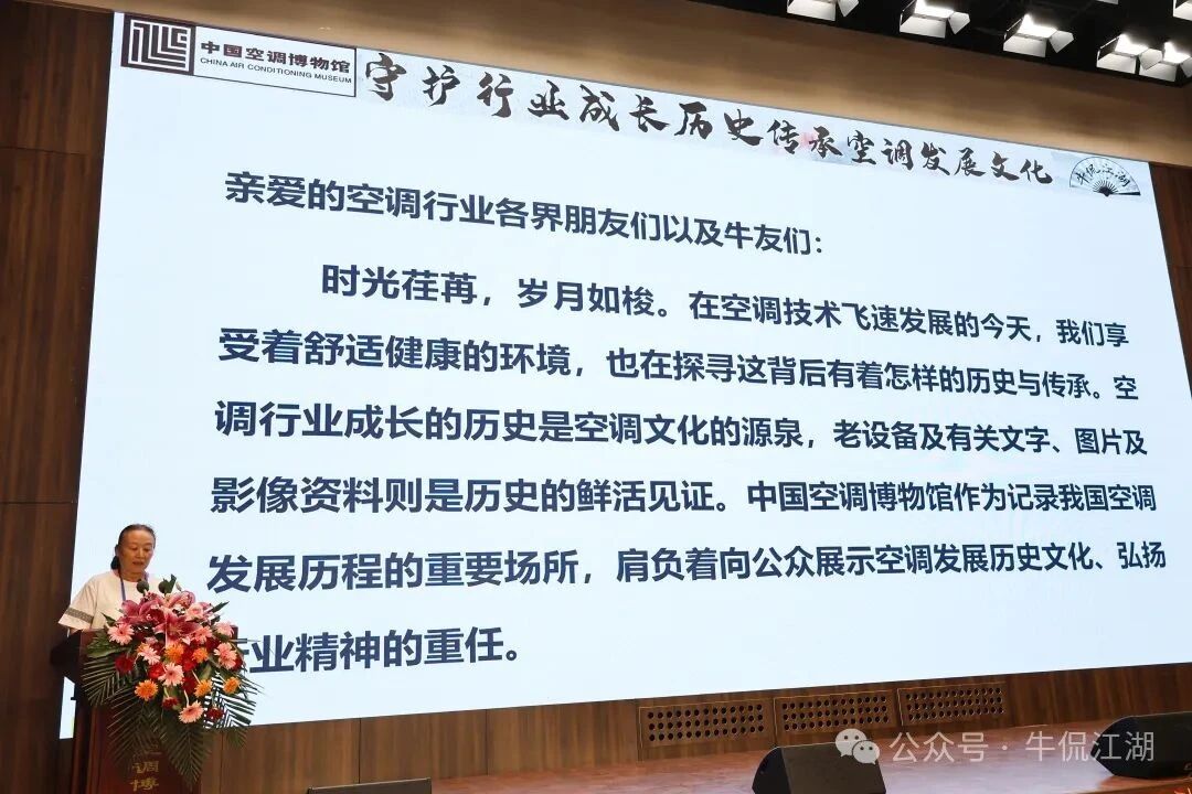牛侃暖通联合创始人董丽萍女士宣读《守护行业成长历史,传承空调发展文化》捐赠捐藏中国空调博物馆倡议书